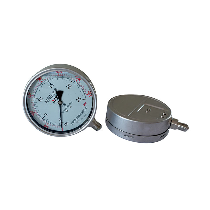 应用:适用于工业过程中具有腐蚀性的,非高粘度不易结晶的液体或气体压力的测量。壳内充液型也适用于有腐蚀环境及有剧烈振动的场合。